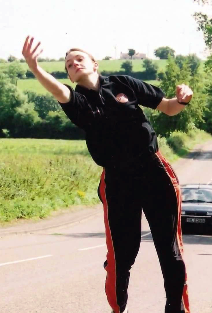 1e stap: De speler bereikt het werppunt met de fles in zijn hand.